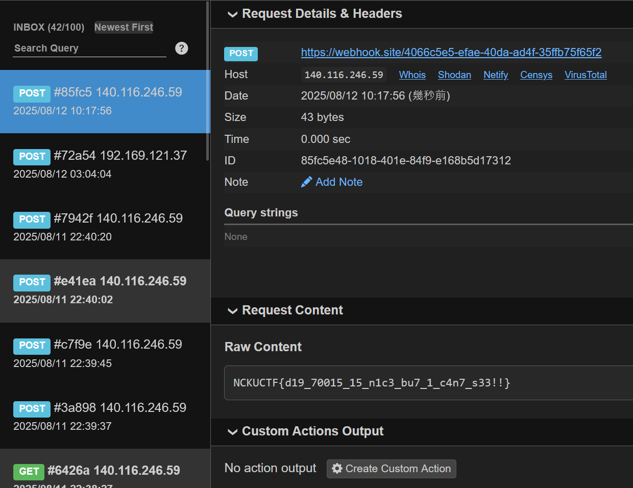 輸入後webhook即收到flag。