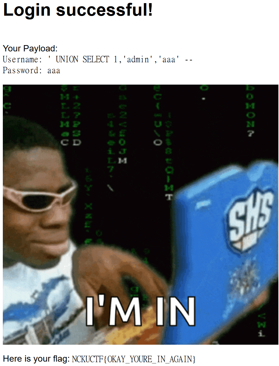 NCKUCTF{OKAY_YOURE_IN_AGAIN}